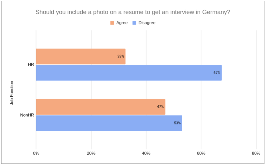 It is interesting to see while 2/3 of HR professionals said that having a photo is not a decision factor, still half of non HR professionals believe that you should put a picture on your resume.